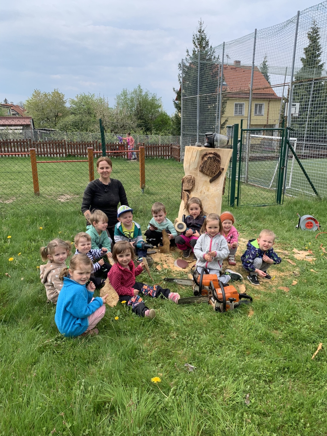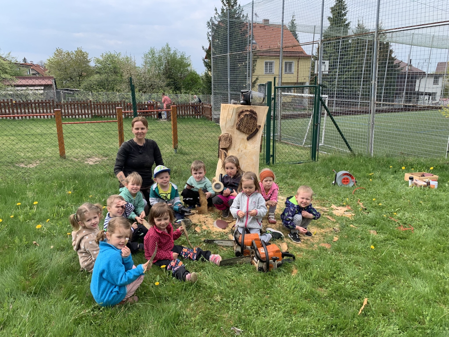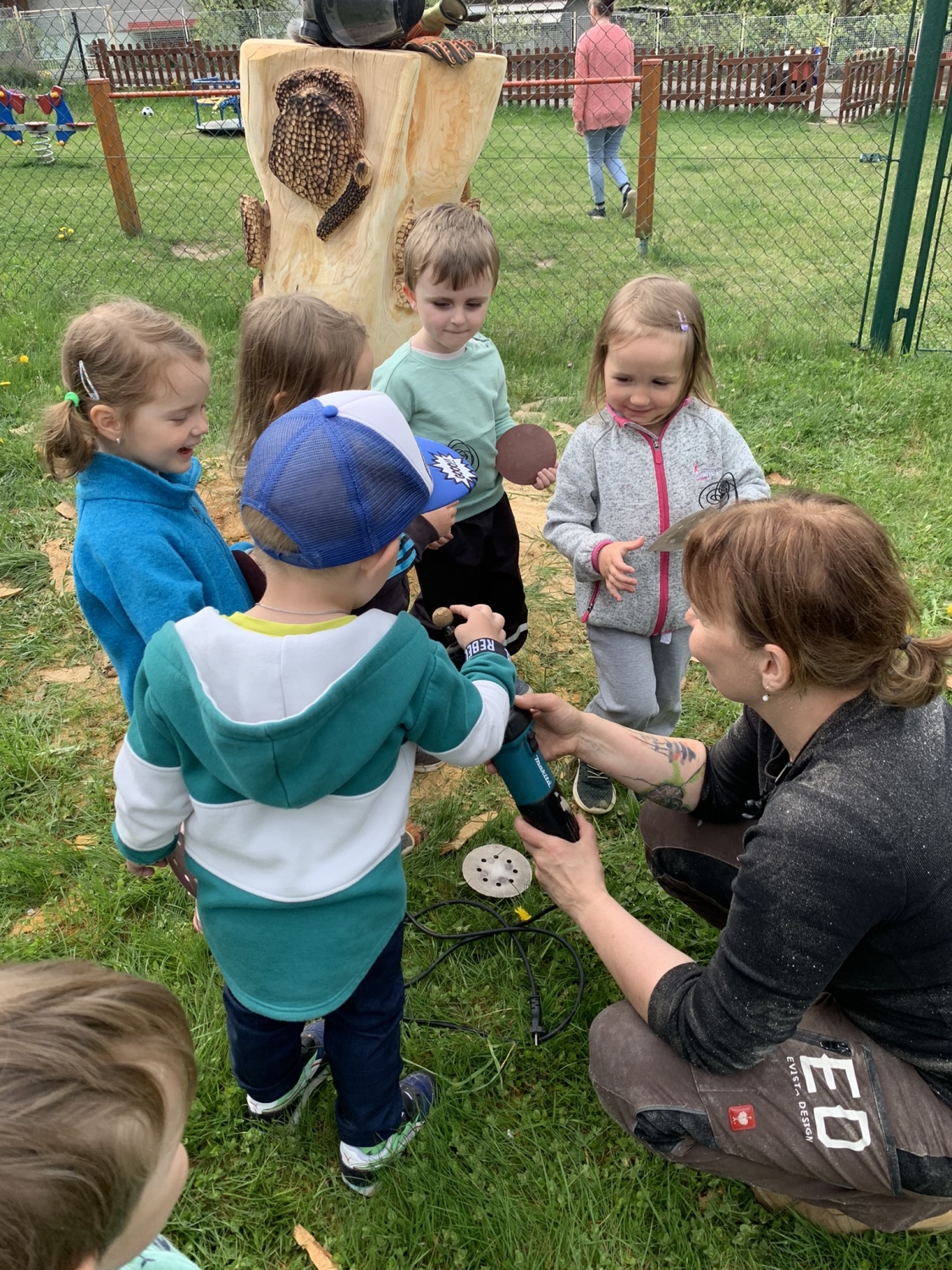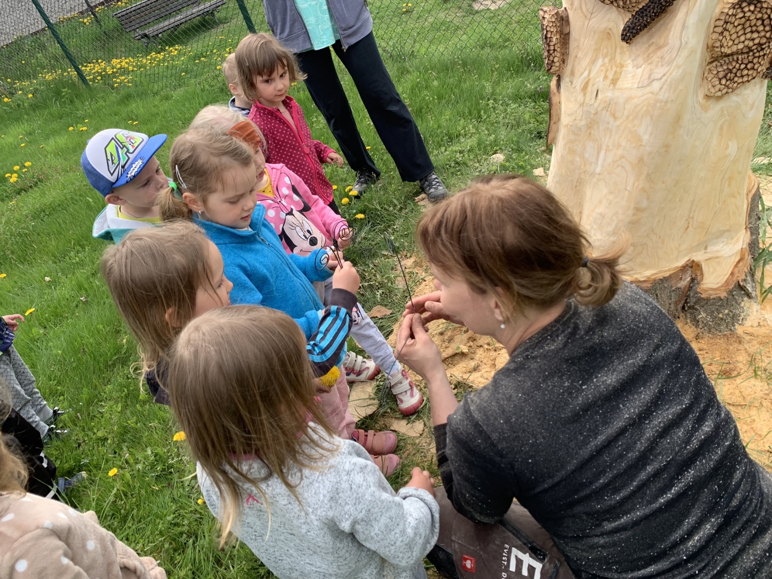 Návštěva řezbářky na školní zahradě Kopretinky
