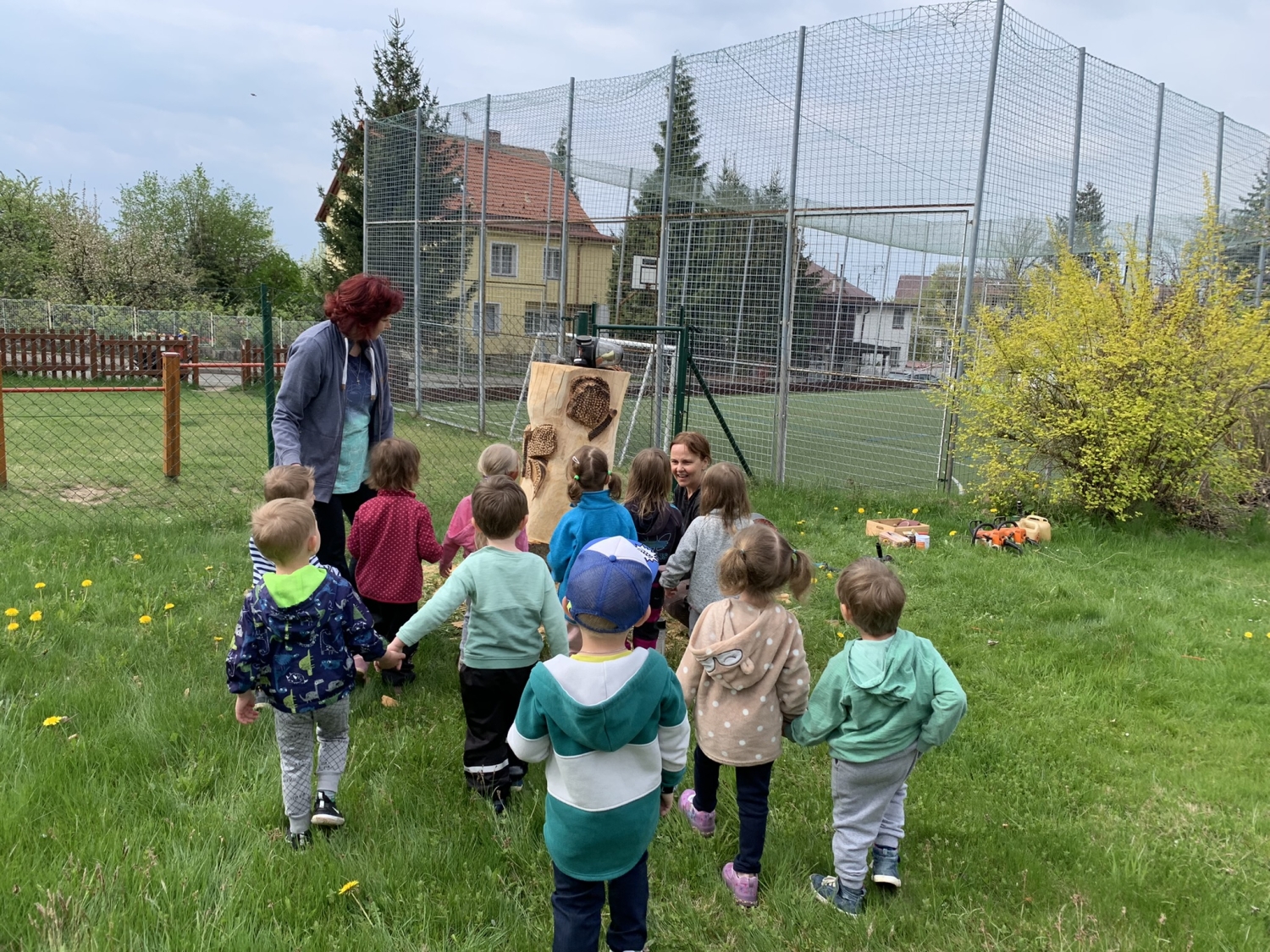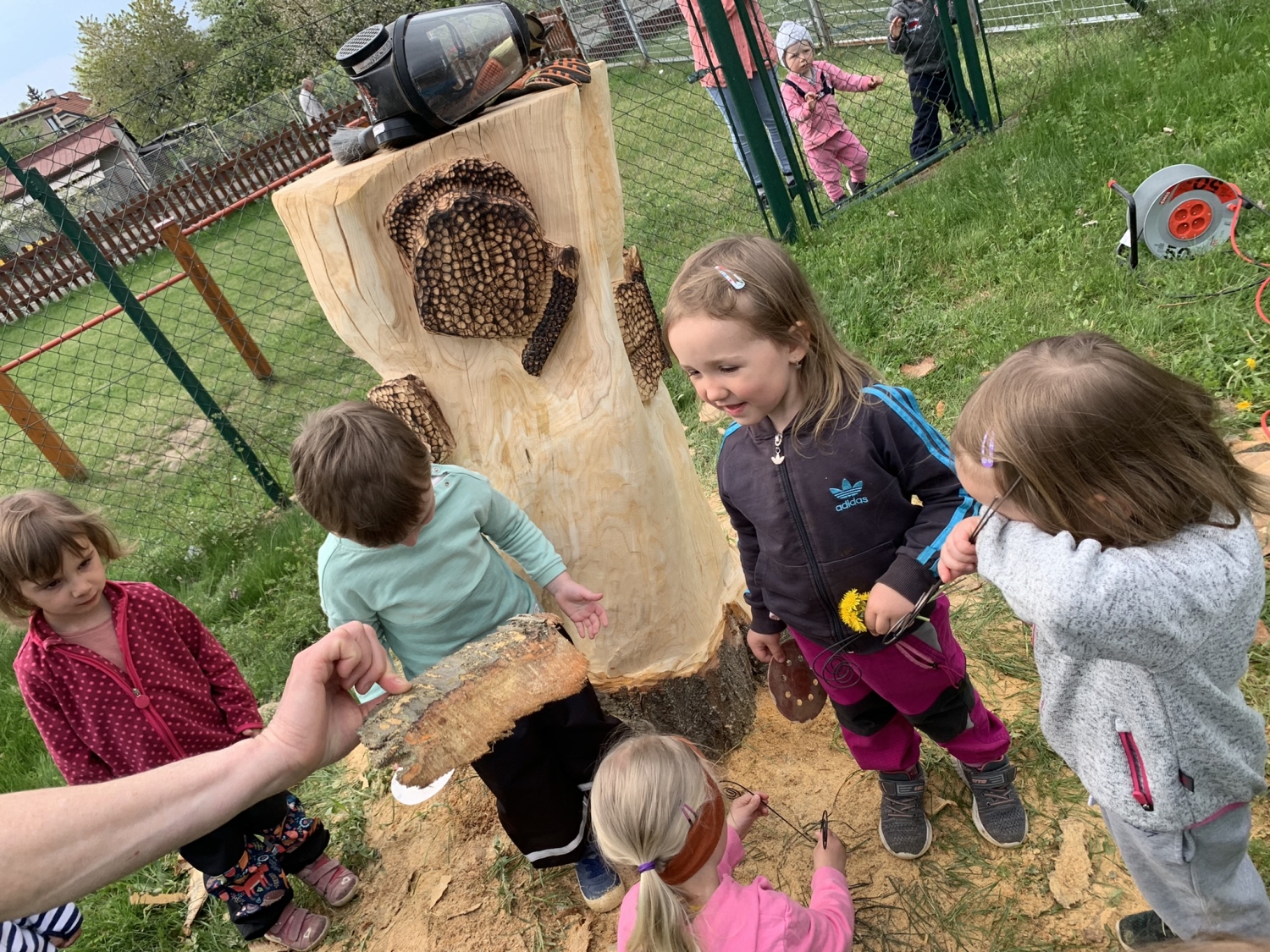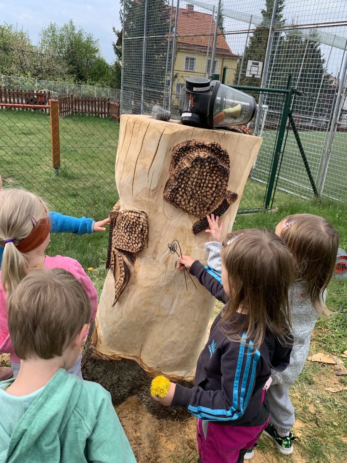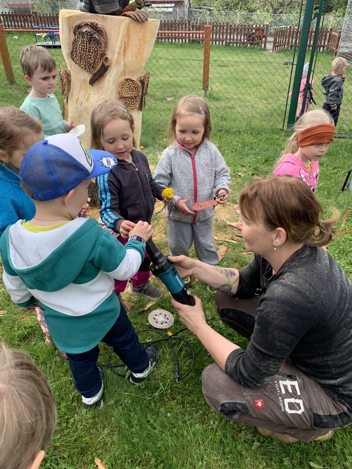Návštěva řezbářky na školní zahradě Kopretinky