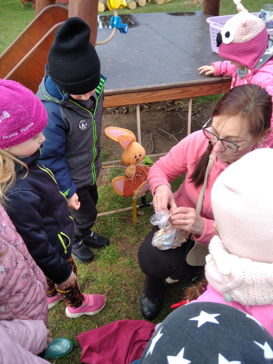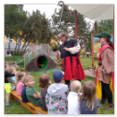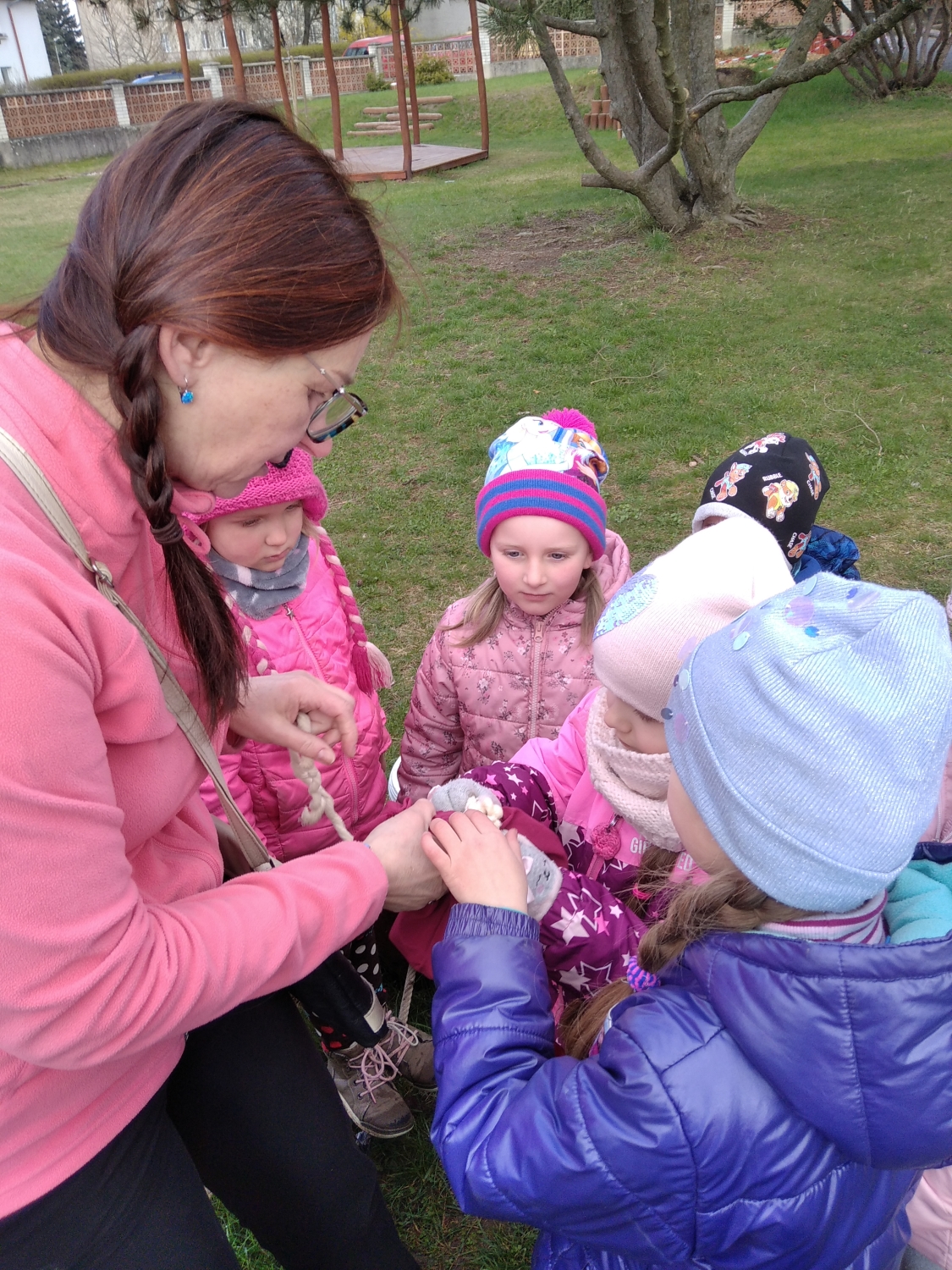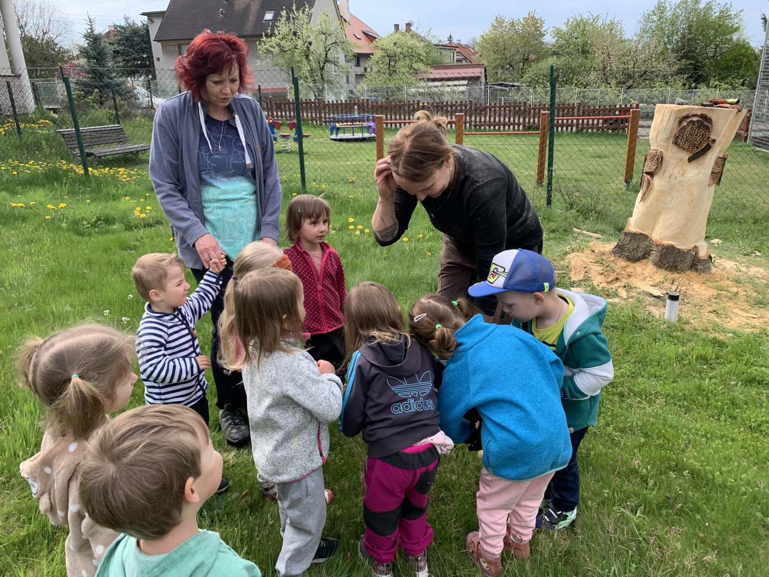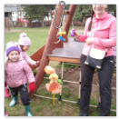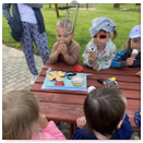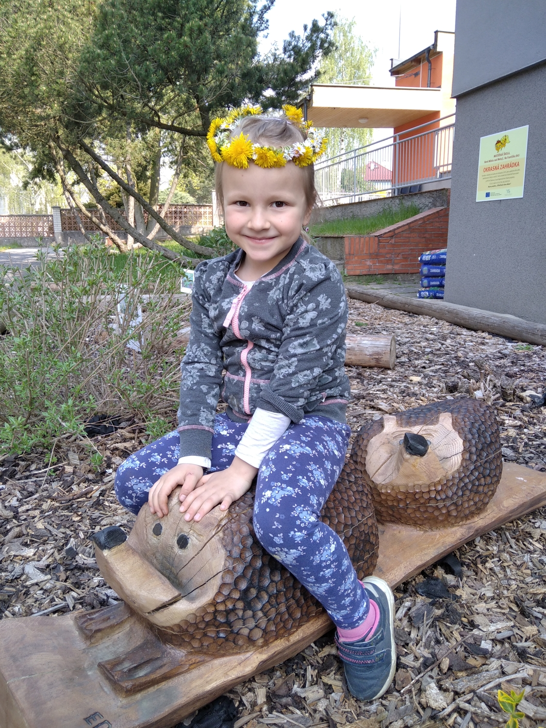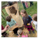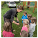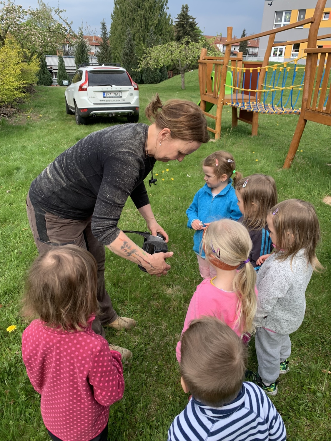 Návštěva řezbářky na školní zahradě Kopretinky