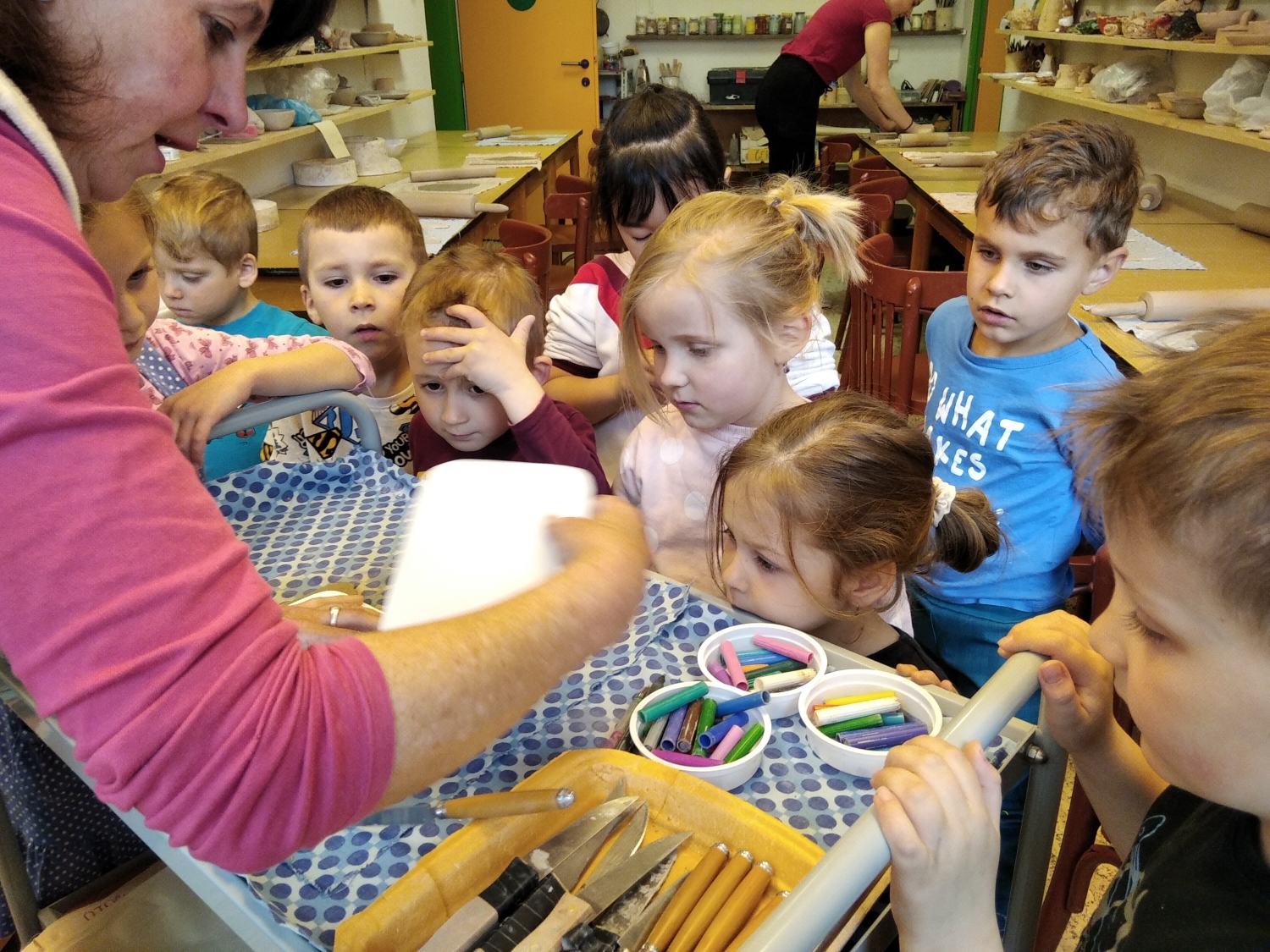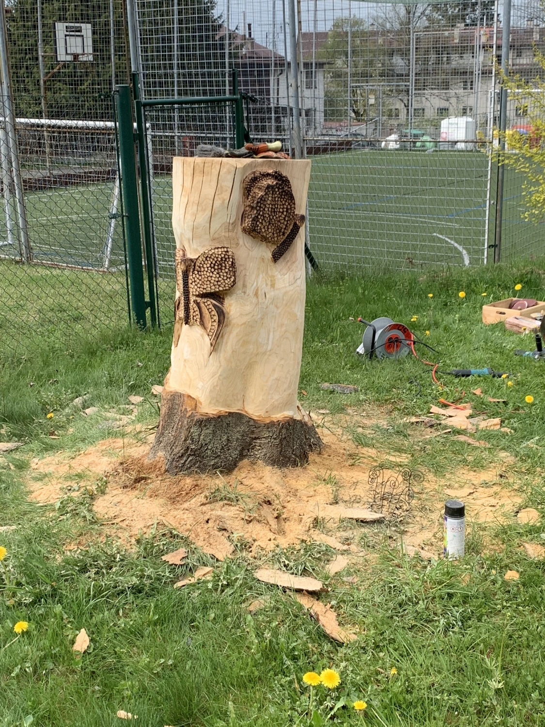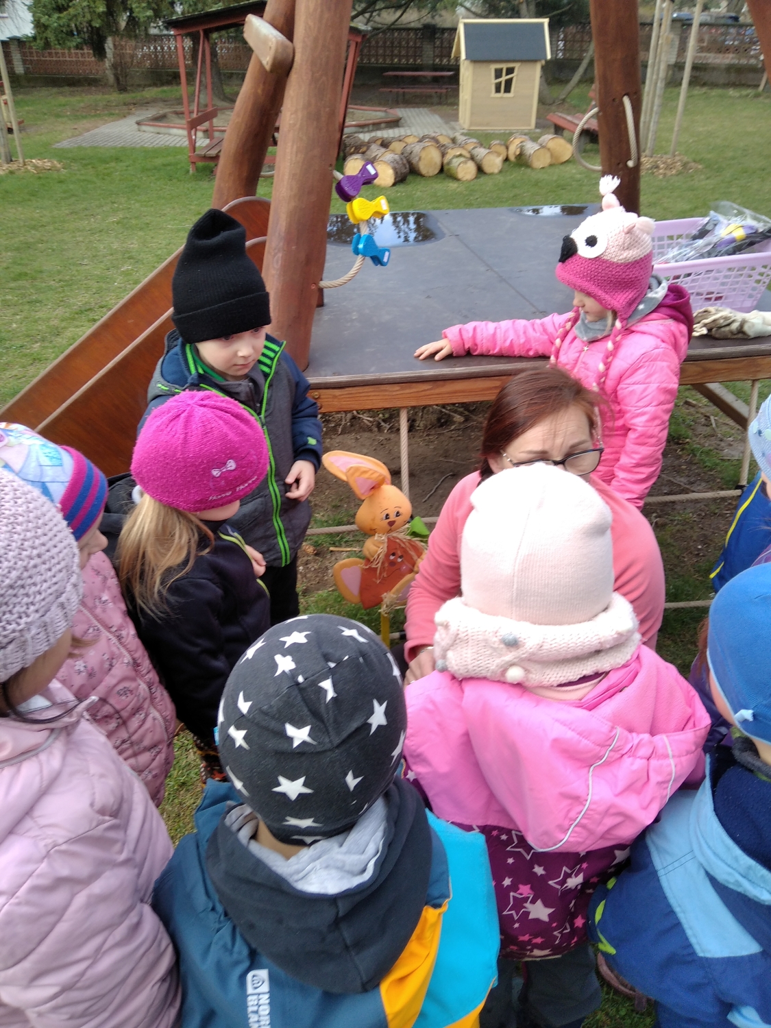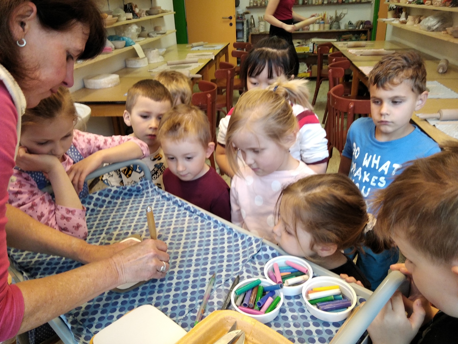 Návštěva řezbářky na školní zahradě Kopretinky