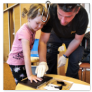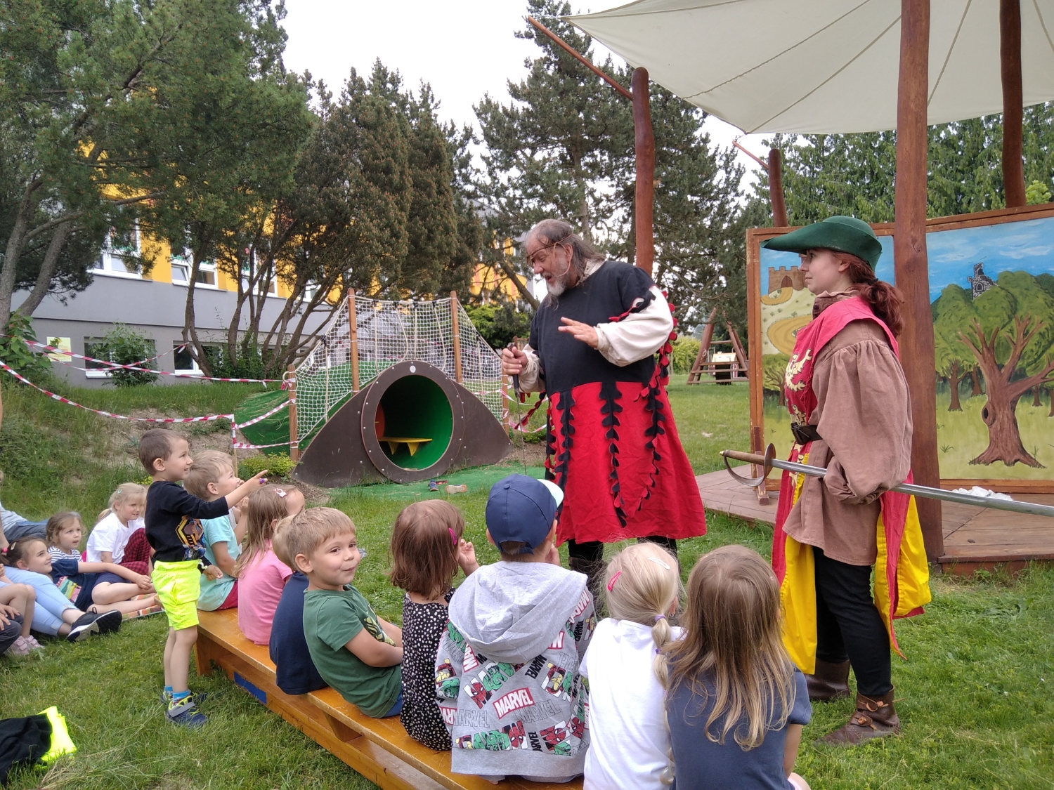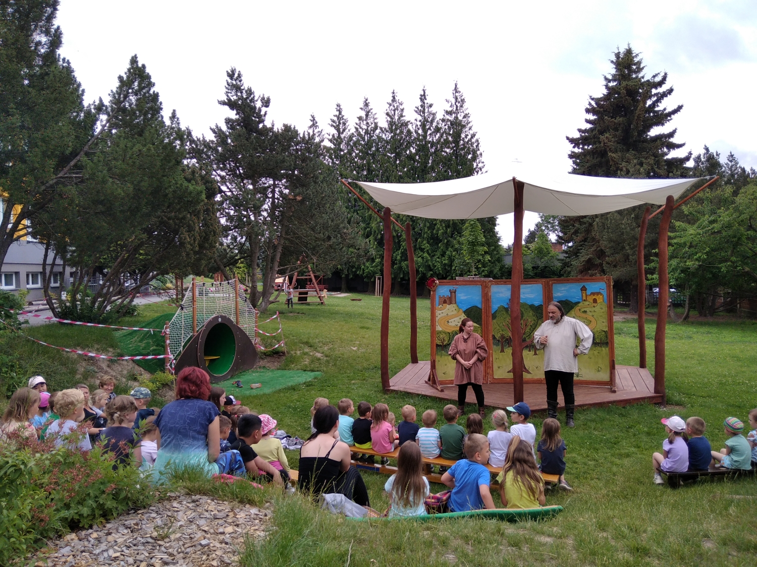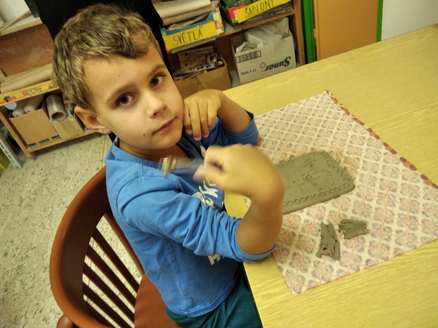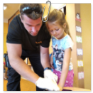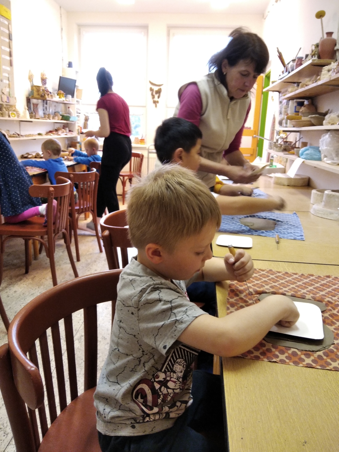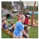 Návštěva řezbářky na školní zahradě Kopretinky